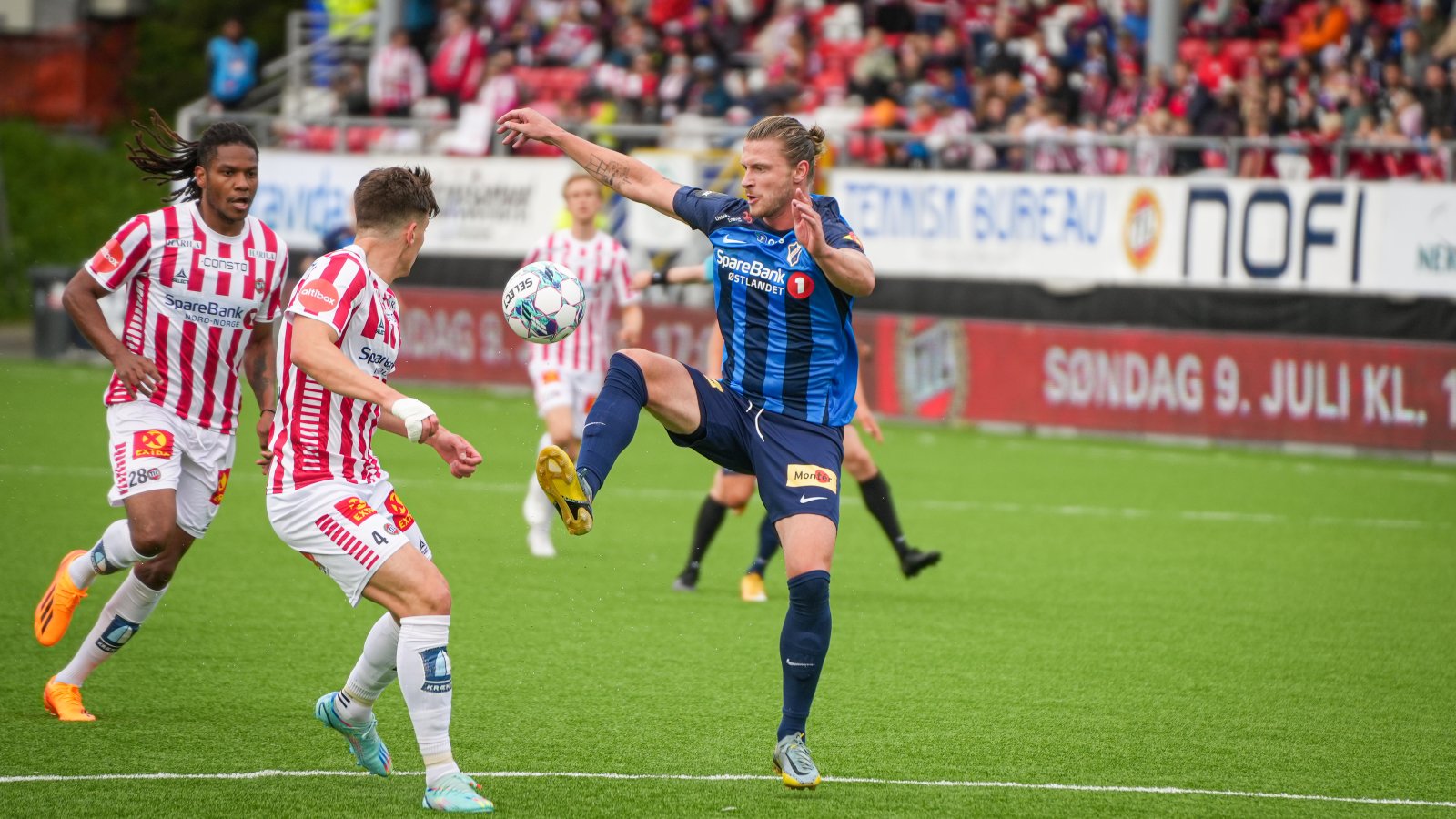 Etter 69 minutter hadde Høgh en avslutning i nettveggen. Fredrik Krogstad slo ut til Høgh på kanten av 16-meteren, og fra ca. 14 meter knallet dansken til, men dessverre på feil side av stolpen.