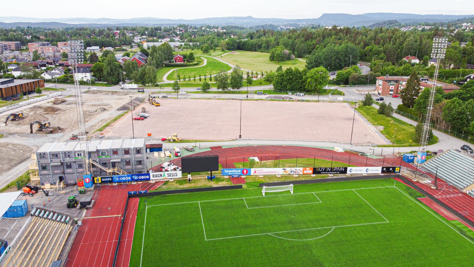 Anleggsbrakker settes opp og byggeplassen gjerdes inn. Gang- og sykkelveien vest for dagens stadion blir stengt. Syklister og gående henvises til Øygardveien eller gang- og sykkelvei markert med rosa i oversiktsbildet.