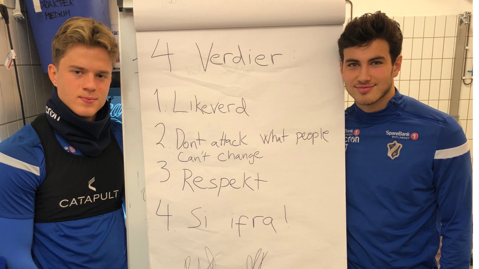 Hver klubb skal også ha to holdningsambassadører, og den oppgaven har Peder Vogt og Nicolas Pignatel påtatt seg. Det betyr at disse flotte gutta har et overordnet ansvar for bevisstgjørings- og holdningsarbeidet i klubben vår. På sikt skal de også være tilgjengelige for sporadiske oppdrag, som for eksempel skolebesøk i nærmiljøet for å gjøre forebyggende arbeid mot diskriminering.