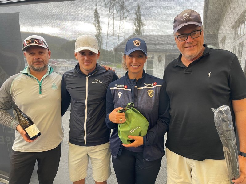 Den årlige golfturneringen ble heldigvis gjennomført! Og etter at flere partnere hadde betalt seg ut av selvpåført trøbbel kunne en fin sum overføres til barn og unge under behandling på
