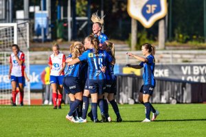 Forrige helg malte A-lagskvinnene Nadderud BLAA med tre poeng mot Lyn i en forrykende kamp. Jubelen sto i taket både på banen og i garderoben.