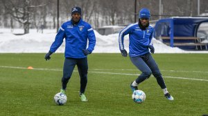 De spilte ikke et eneste minutt i Eliteserien i fjor. Nå er Raymond Gyasi og Luc Kassi endelig tilbake på treningsfeltet - med ballen i beina. Men helt frie tøyler får de ikke ennå.