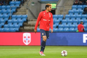 Hanche-Olsen med sitt første landslagsmål da Norge slo Kosovo 5-0.