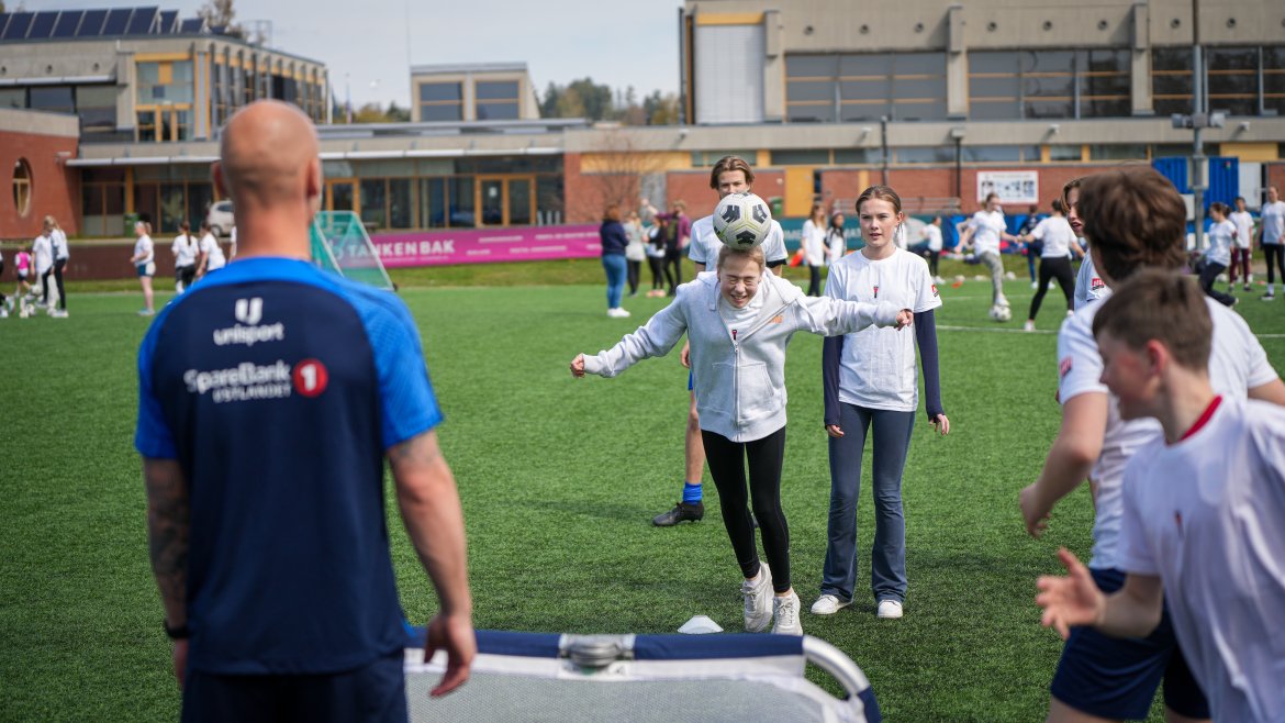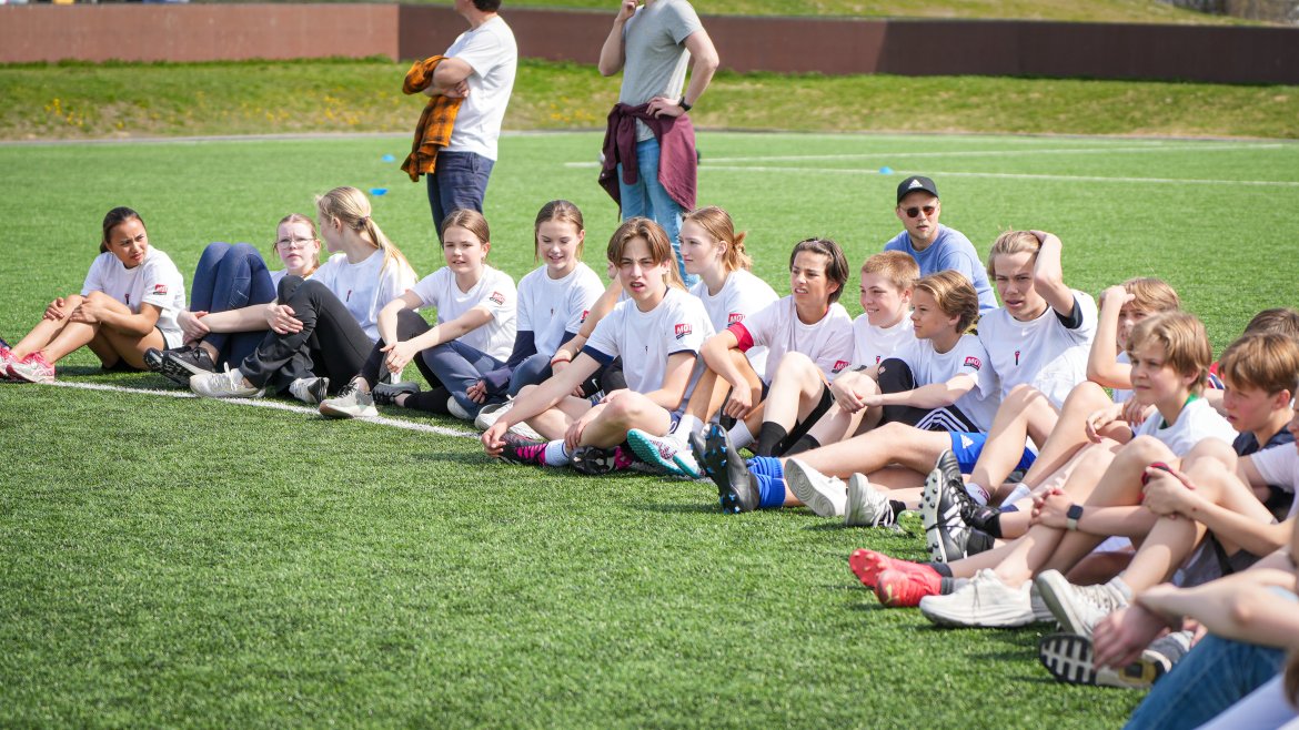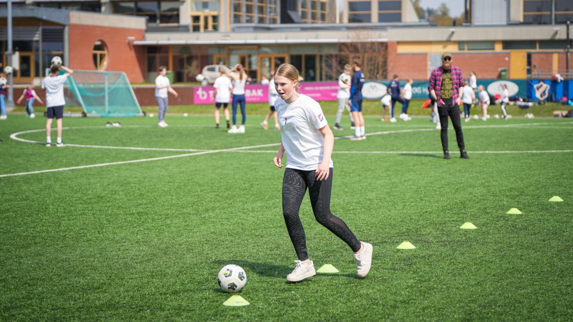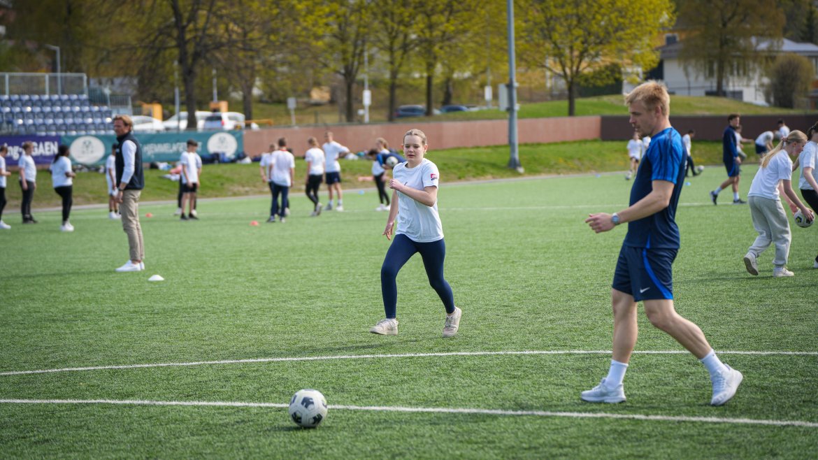 På tampen av timen arrangerte TV 2 Sporten en fotballkamp hvor de over hundre elevene fikk prøve seg mot tre-fire Eliteseriespillere.