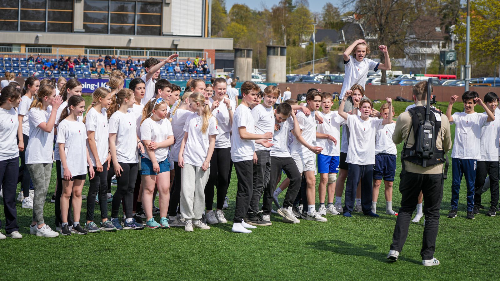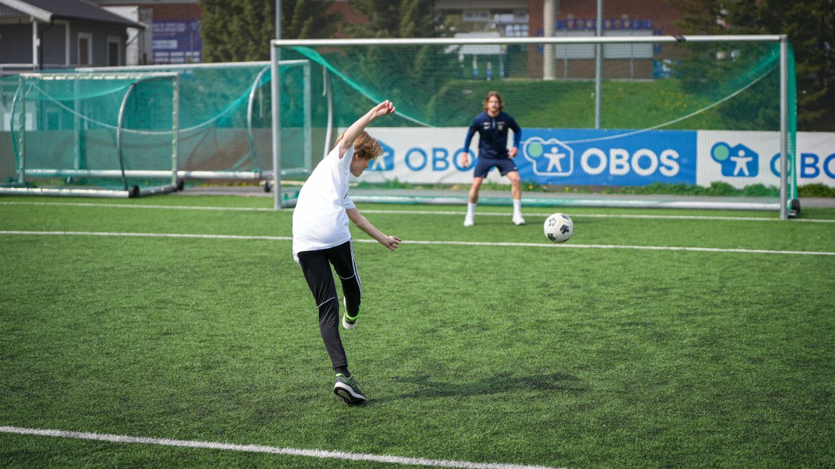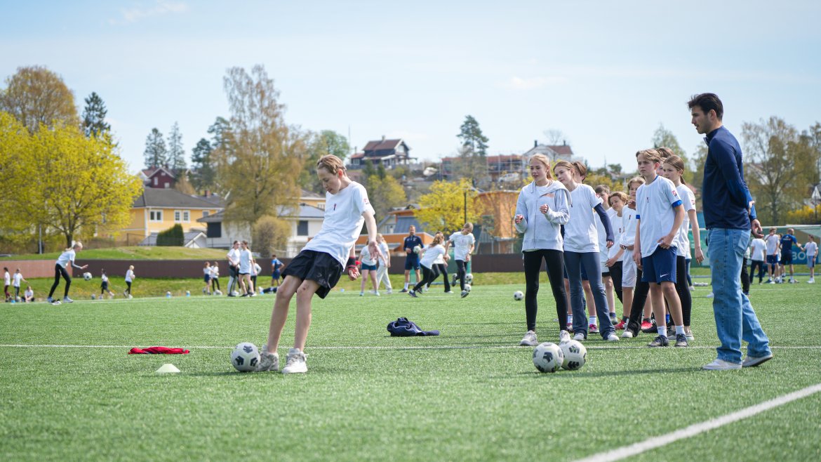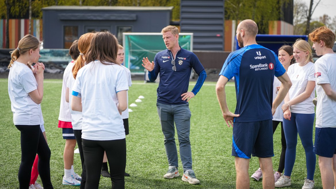 På tampen av timen arrangerte TV 2 Sporten en fotballkamp hvor de over hundre elevene fikk prøve seg mot tre-fire Eliteseriespillere.