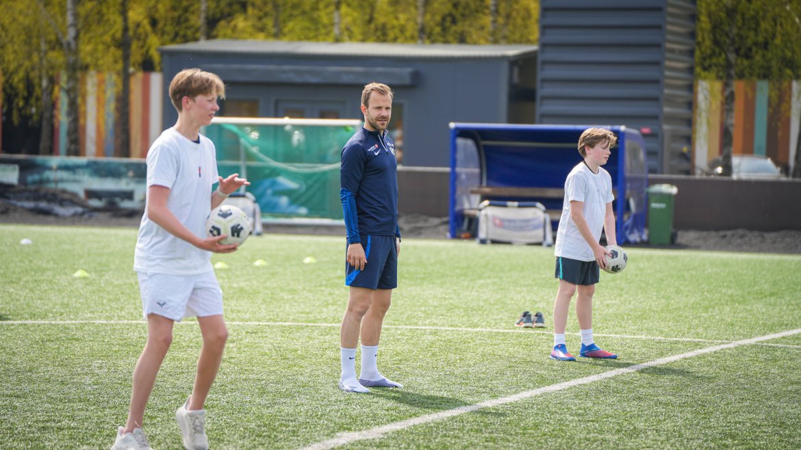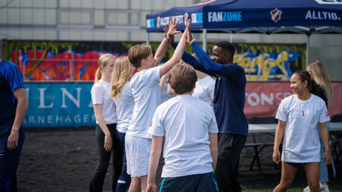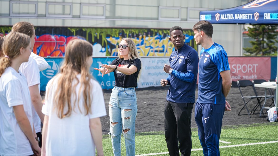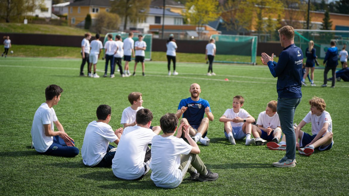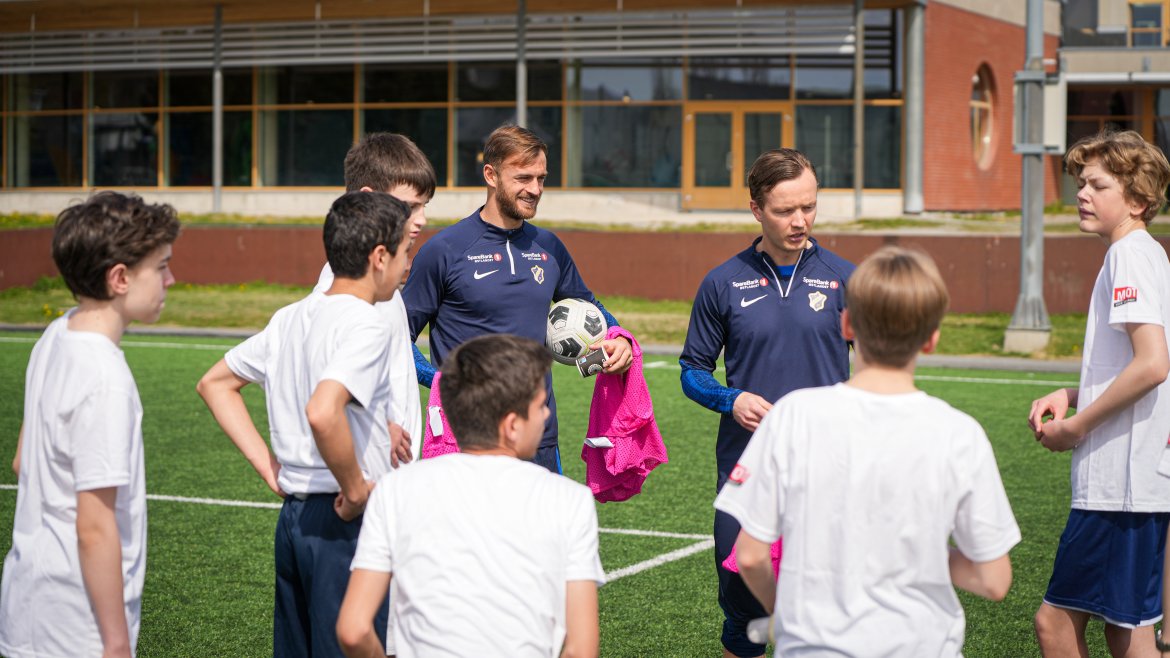 Spillerne våre fra begge A-lagene styrte showet og hadde mange stasjoner på Tobbebanen hvor 8.-klassingene fikk konkurrere, terpe og spille fotball.
